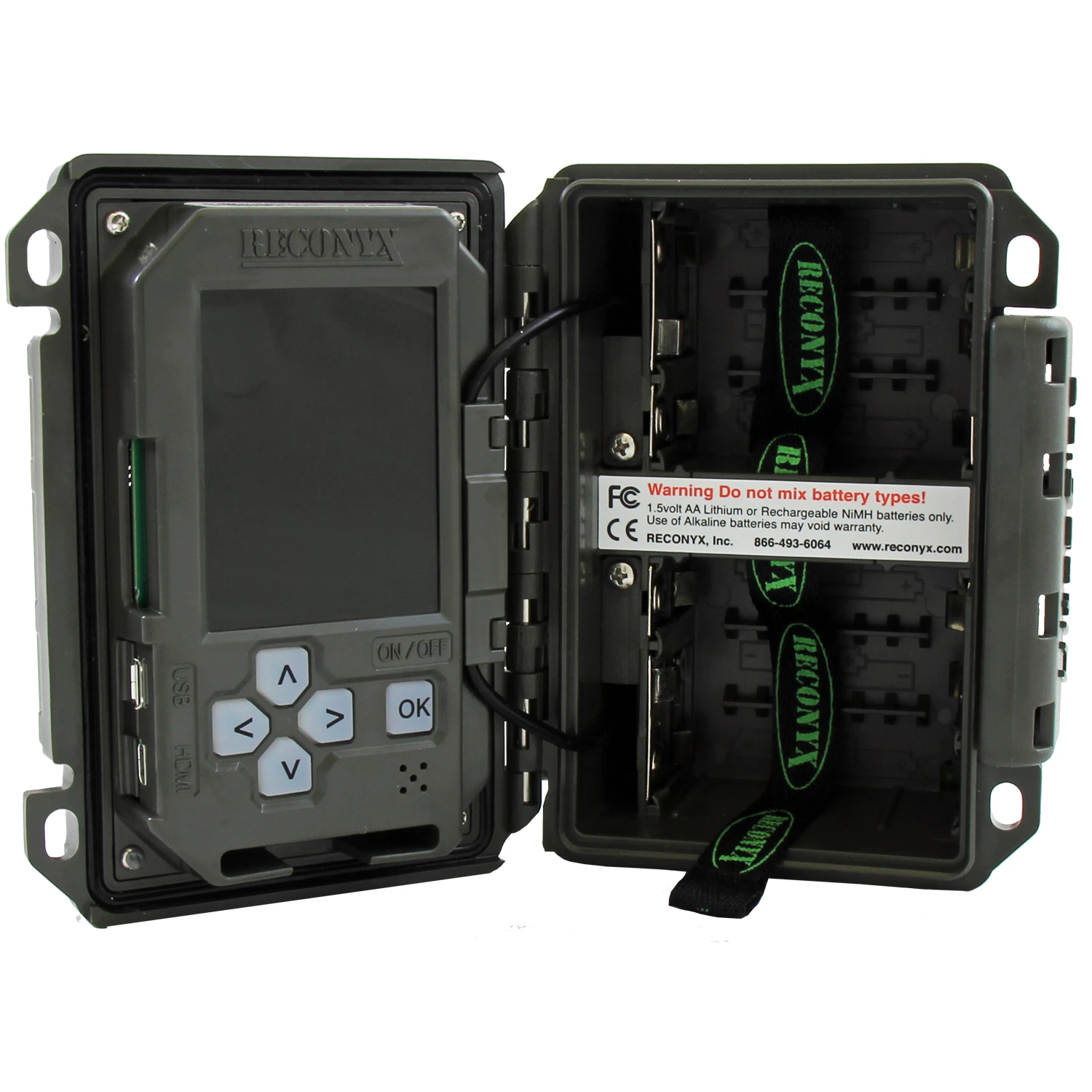 1080P HD video at 30 frames per second, including 24bit Digitally Enhanced Stereo Audio with wind noise reduction. 3.4, 5 and 8 megapixel image resolution options. 2.4” color TFT display enables a much better user interface with camera programming options as well as allowing playback of images and videos with sound directly on the camera. Micro HDMI and USB output connections allow the user to playback images and video with sound directly to their High Definition televisions or transfer data to their computer. High sensitivity Image Sensors coupled with the latest generation Covert Infrared night vision Illuminators provide exceptionally clear night time images, even at extended ranges of up to 80 feet. Two dedicated camera lenses, one specifically designed to provide rich daytime images and the other to provide clear night time Infrared photography without having to use a noisy mechanical Infrared cut filter. No moving parts means more reliability and totally silent operation in the field. All this and proudly made in the U.S.A.! RECONYX UltraFire Scouting Cameras, raising the bar on Game Camera performance…