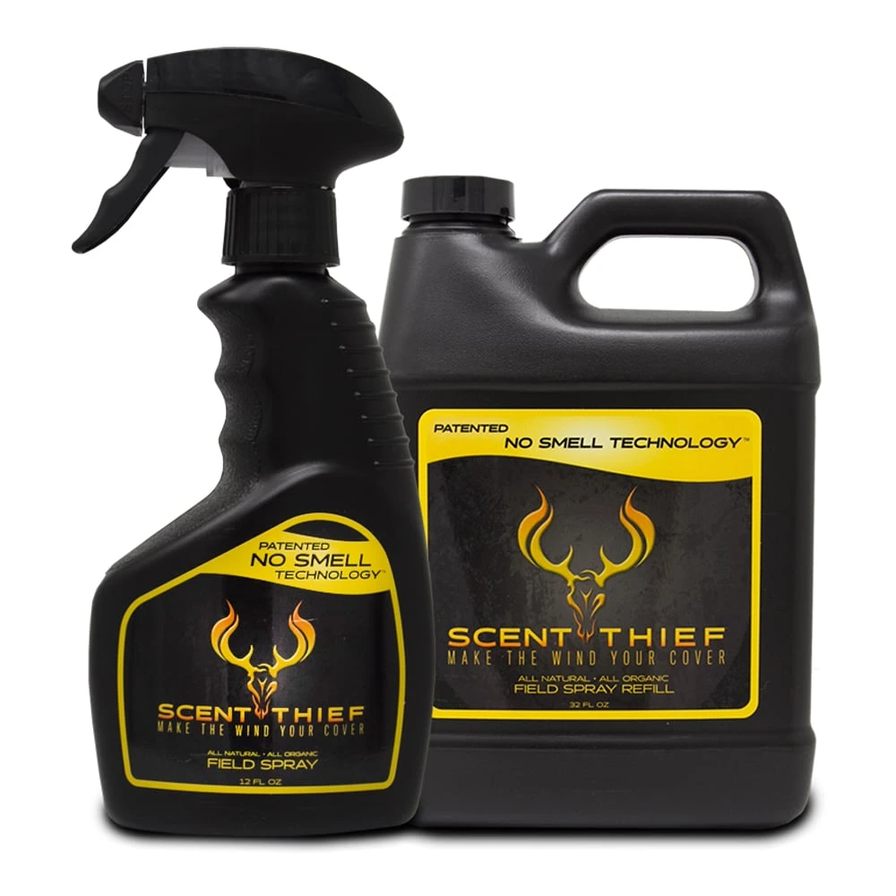 Scent Thief’s revolutionary formula is the first and only hunting scent blocker product to completely remove an animal’s sense of threatening odors. Our patented No Smell Technology relaxes the olfactory epithelium, temporarily eliminating an animal’s sense of smell. When an animal gets Scent Thief Field Spray in their nose, they won’t be able to smell anything else. Guaranteed. The wind can now act in your favor. All natural, all organic ingredients are safe for skin, clothing and the environment. The Scent Thief Spray