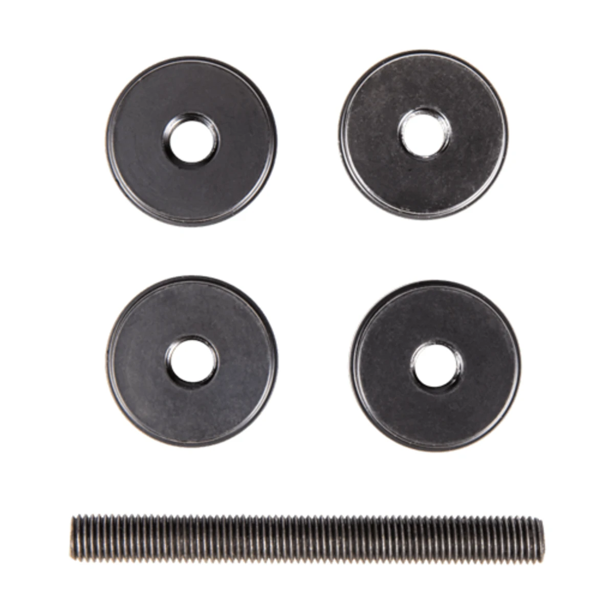FINE-TUNE THE WEIGHT OF YOUR STABILIZER AND ACHIEVE ABSOLUTE BOW BALANCE WITH THE TROPHY RIDGE CUSTOM STABILIZER WEIGHT SET. By using the included 3” extension rod with 5/16″ x 24 threads, add or remove each one-ounce threaded weight until you find the perfect weight and balance configuration. The Trophy Ridge Custom Stabilizer Weight Set fits all Trophy Ridge front or side attaching Hitman and Static stabilizers.